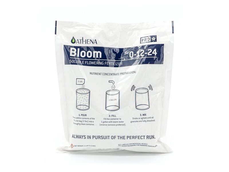 Pro dosažení nejlepších výsledků dodržujte doporučené dávkování. Athena PRO Line Bloom se vyrábí ve formě suchého hnojiva, které by se mělo nejprve rozpustit ve vodě a tím se vytvoří koncentrovaný roztok. Ten poté přidejte do zavlažovacího systému nebo nádrže. Přímé míchání v malém množství se nedoporučuje. Hnojivo dávkujte maximálně 19 g na 10 l vody. Na každý 1 gram hnojiva Athena PRO Line Bloom použijte 0,6 gramu Athena Pro Line Core. Vždy používejte v kombinaci se směsí Athena Pro Core.