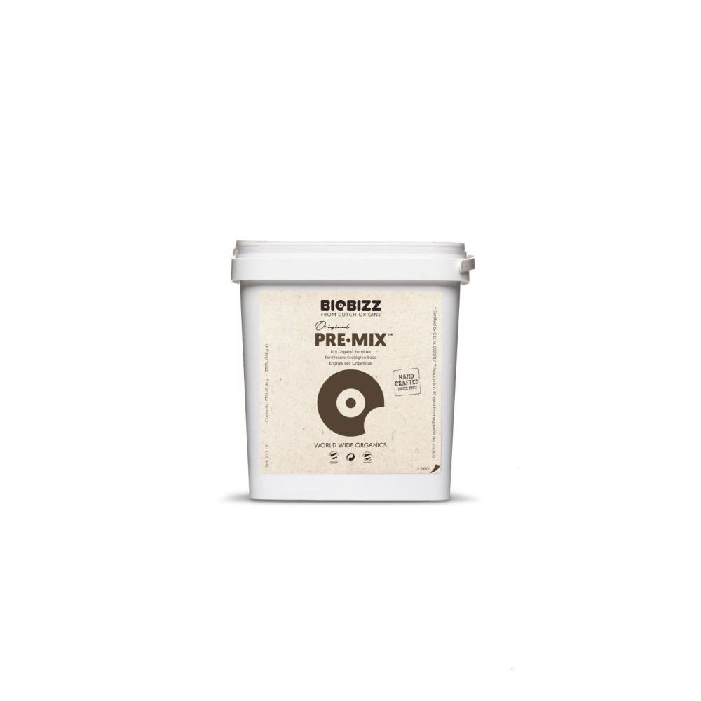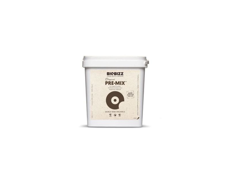 Biobizz Pre-Mix je unikátní práškové hnojivo, které slouží k obnovení přirozených vlastností vyčerpané půdy. Pre-Mix je směsí wormhumusu z kalifornských žížal, vulkanického prachu, stopových prvků a prospěšných hub. Podporuje dynamický růst, bohaté kvetení a maximální odolnost proti chorobám a plísním, čímž zajišťuje odolné postavení rostliny a zdravý vzhled.