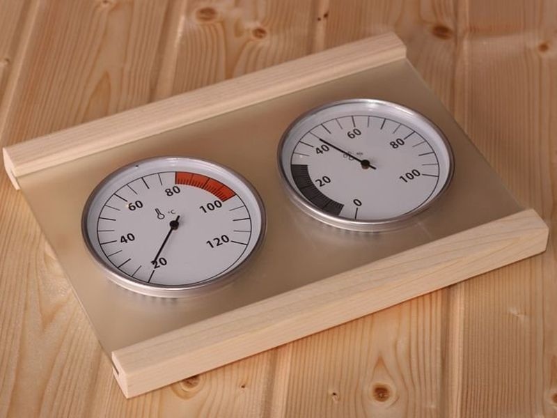 Prémiová stanice pro měření klimatu vám ukazuje teplotu a vlhkost. Tyto parametry můžete sledovat a upravovat si klima v sauně podle sebe. Měřicí přístroje mají průměr 10 cm a každý je uzavřen v kovovém pouzdře.