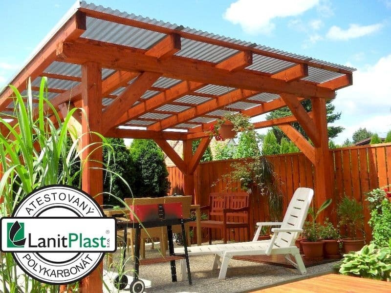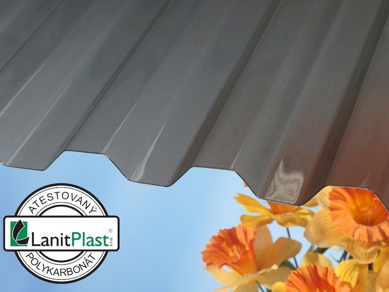 Trapézové desky z polykarbonátu o síle 0,8 mm s extrémně jemnou, matově sametovou povrchovou strukturou (krupičkou) na vnitřní straně desky. Povrchová struktura láme světlo, takže desky nejsou úplně průhledné, ale výrazně průsvitné a vzniká pod nimi příjemný chládek při zachování světelné propustnosti.