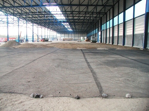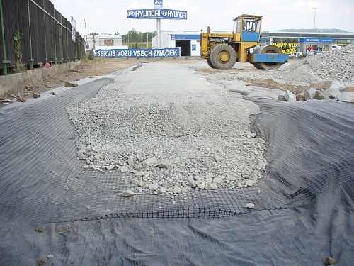 Dvouosá monolitická geomříž Tensar SS20 75x4,00m v celkové výměře zhruba 1250 m2
