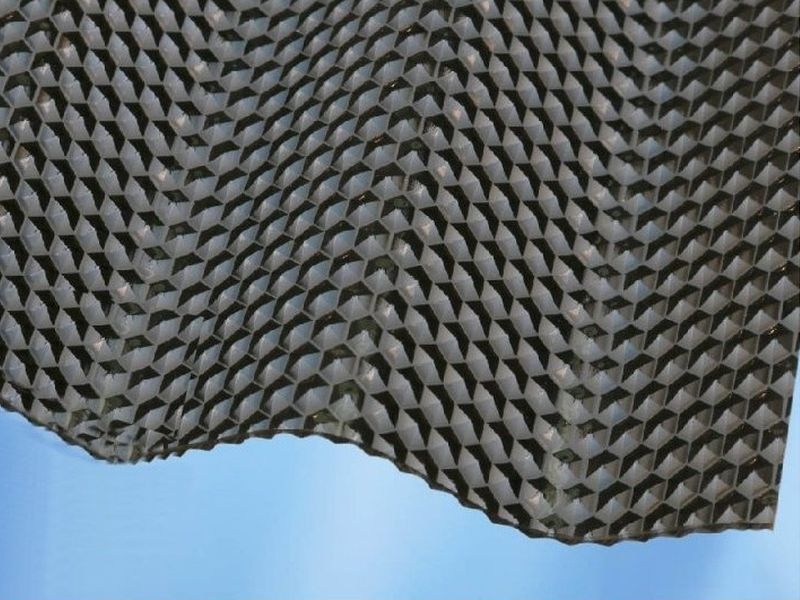 Extrémně robustní vlnité polykarbonátové desky Marlon CSE Diamond VL 76/18 o síle 2,6 mm s povrchovou strukturou – vytlačené šestihrany podobné plástvím na vnitřní straně jsou určené pro rozptyl světla. Polykarbonátové desky mají bronzovou (kouřově hnědou) barvu.
