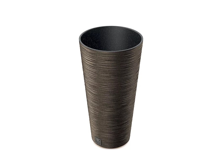 Vysoký květináč je vyroben z plastu v kombinaci s přírodním dřevem. To je získáváno za pomoci pokročilé technologie recyklace . Během tohoto procesu je recyklován přírodní odpad získaný při zpracování dřeva. Ten je pak využit jako unikátní a originální komponent pro výrobu kolekce ECO Wood. Květináč Furu Slim ECO Wood je ze 33 % vyroben ze dřeva.