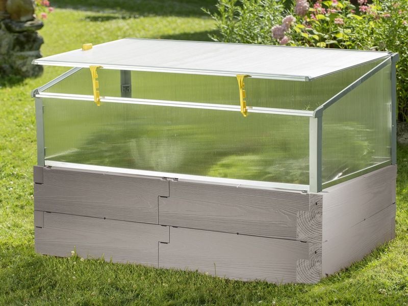 Záhon tvoří zídka složená ze dvou vrstev plastových „kamenů“. Vrcholek záhonu je chráněn průsvitným polypropylénovým krytem s životností cca 2 roky. Prosklení je zhotoveno z polykarbonátu (tl. 4 mm) s UV filtrem, prodlužuje životnost materiálu a zabraňuje přehřátí pěstovaných rostlin.