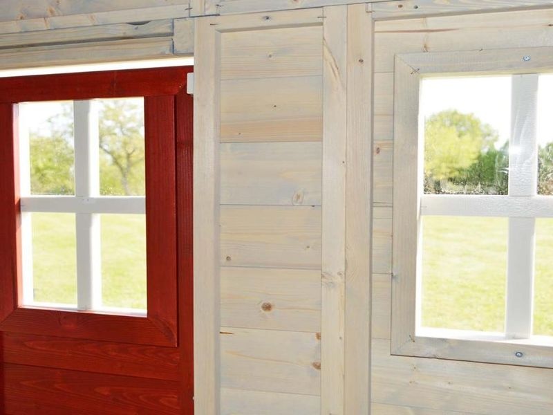 Dřevo není předem ošetřeno. Aby si dřevo domečku zachovalo svůj vizuální vzhled co nejdéle, doporučujeme každoročně ošetřit dřevo přípravkem na ošetřování dřeva.