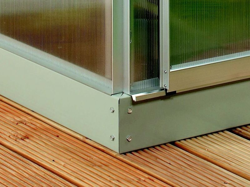 Plechová základna nahrazující podezdívku u skleníků Vitavia Uranus. Vhodné pro skleníky 6700, 8300, 9900, 11500. Základna je vyrobená z pozinkovaného ocelového plechu. Šedá nebo zele­ná barva. Výška základny je 6 cm.